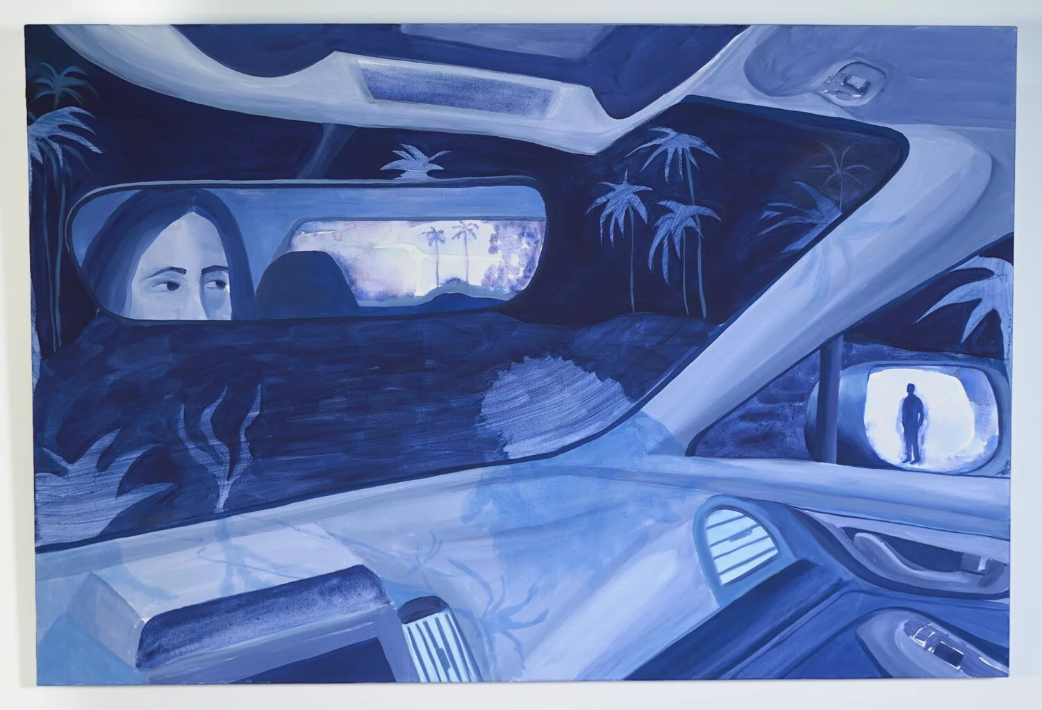 Rearview, oil and acrylic on canvas, 36x24x1.5”, 2020.